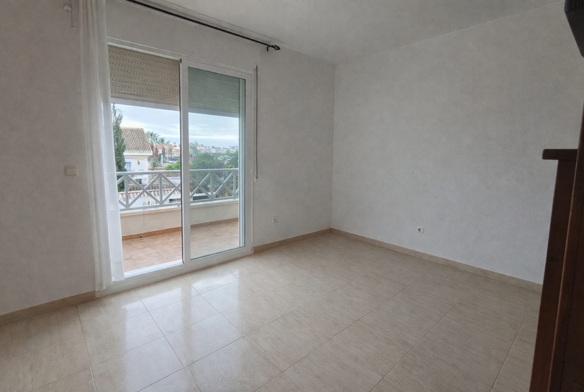 Encontramos un luminoso salón, cocina independiente con salida directa a la zona de piscina comunitaria, perfecta para disfrutar del buen clima durante todo el año. En esta planta también hay una habitación extra, muy práctica como dormitorio, despacho o sala de invitados. La vivienda cuenta además con porche delantero, ideal para desayunar al aire libre o relajarse.
