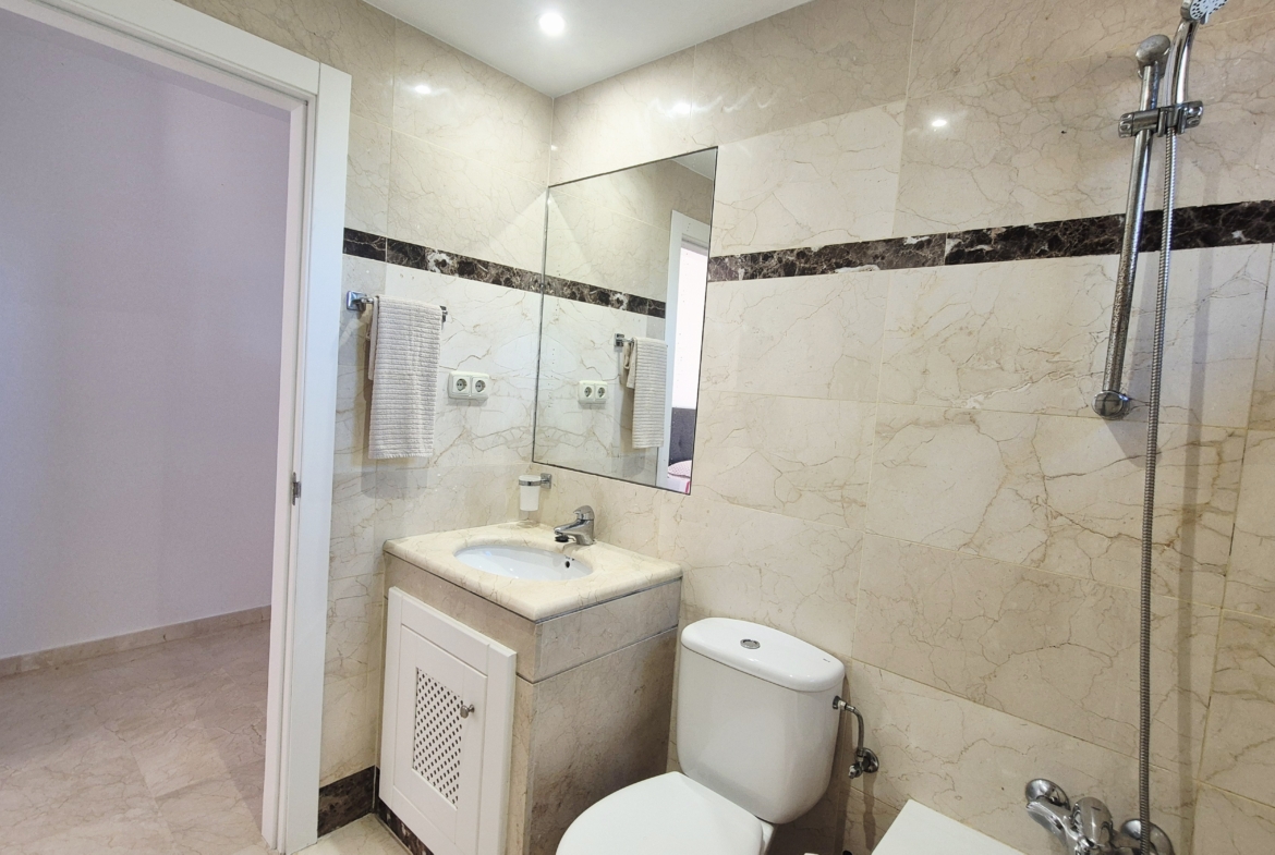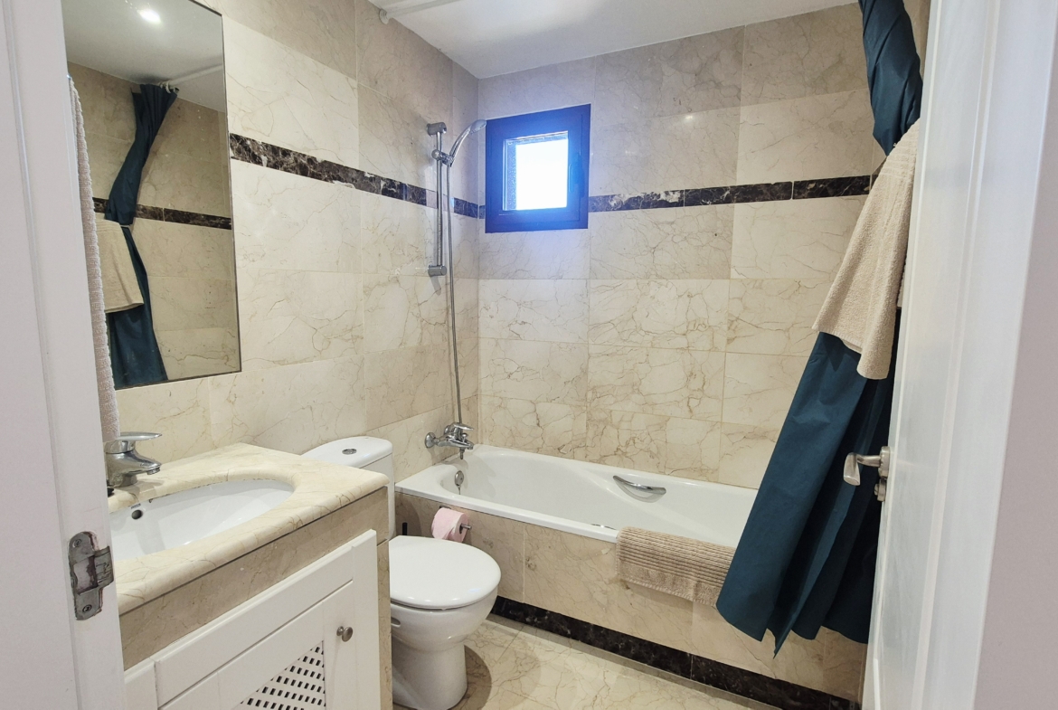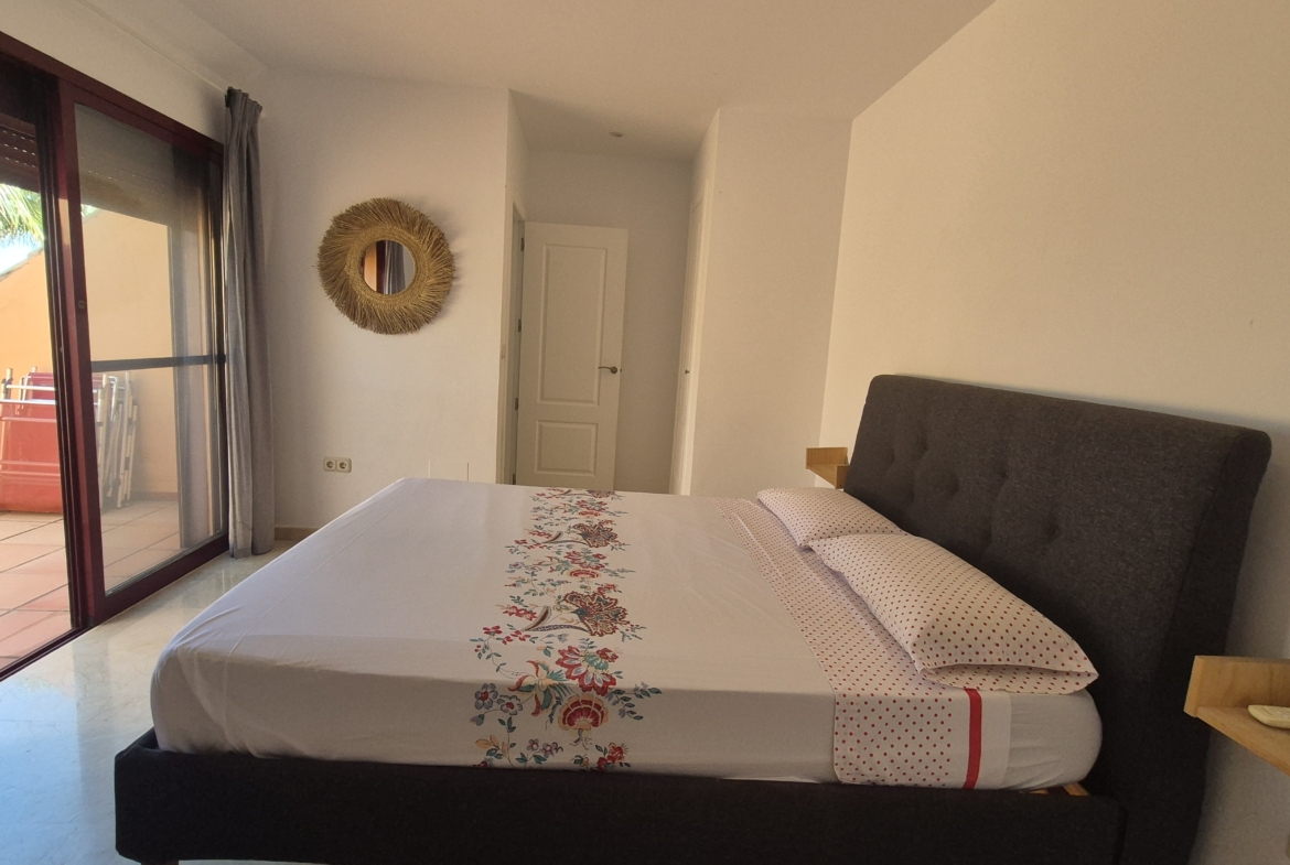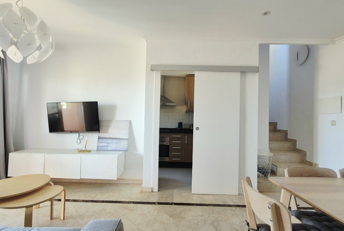 La urbanización cuenta con zonas ajardinadas, piscina comunitaria y acceso directo a la playa, ofreciendo un entorno tranquilo y exclusivo junto al mar.