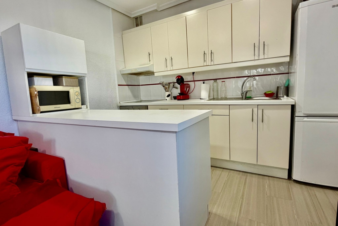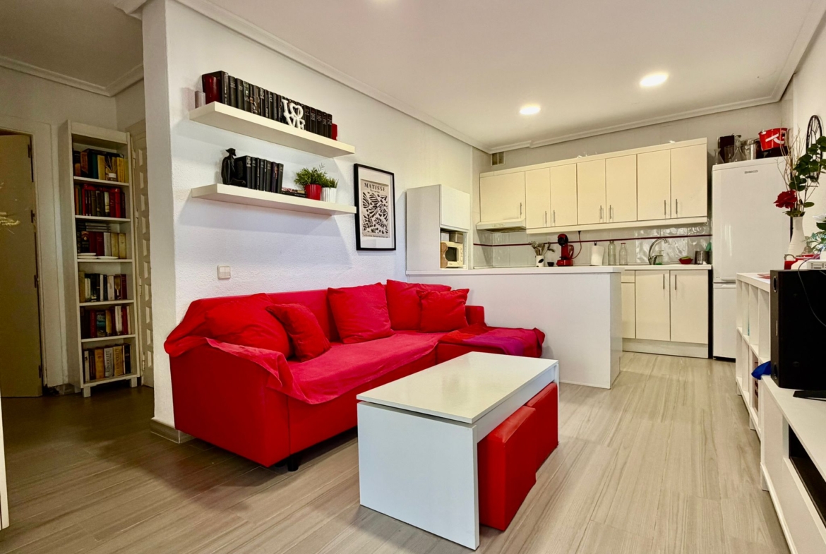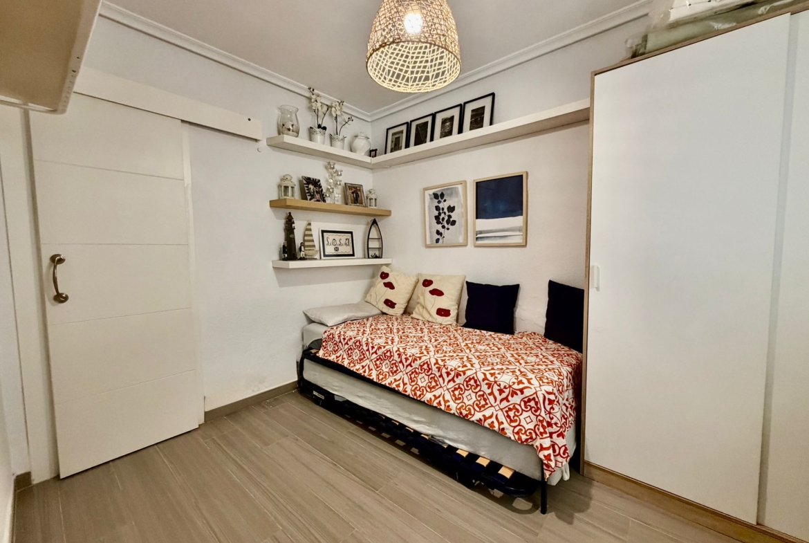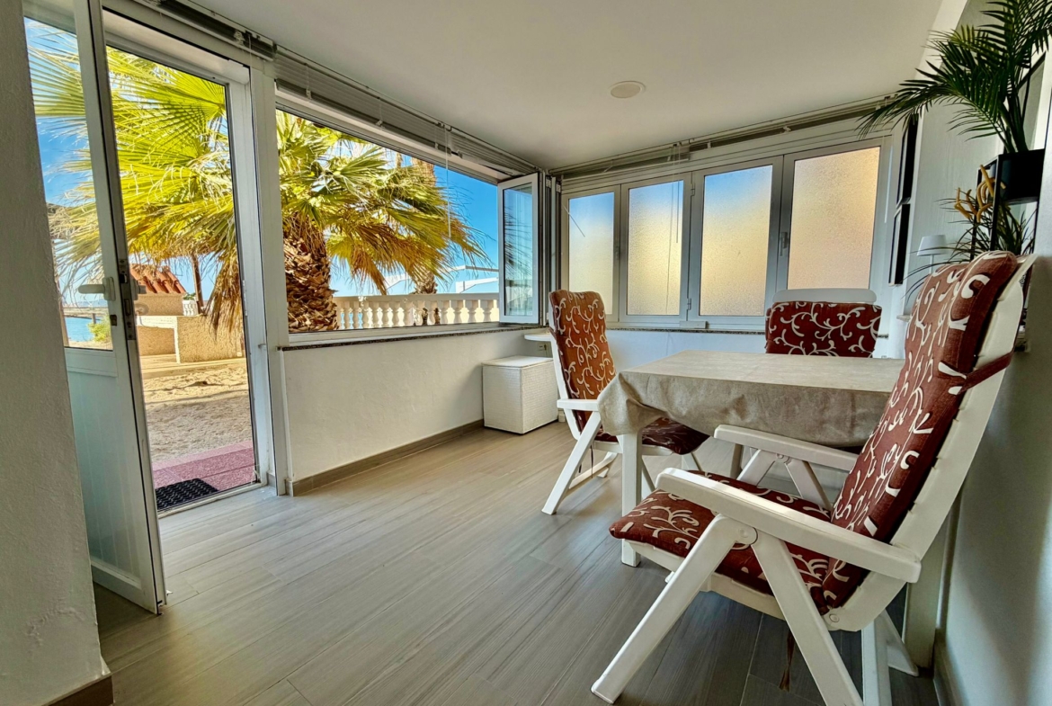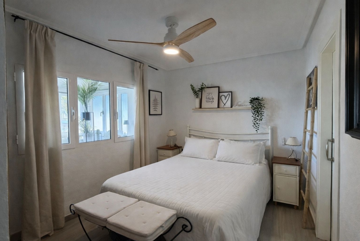 La vivienda cuenta con 2 dormitorios, 1 baño completo y una moderna cocina abierta al salón, creando un espacio amplio, luminoso y muy acogedor. Además, dispone de un comedor cerrado (antigua terraza) con un espectacular cerramiento totalmente abatible, que te permitirá disfrutar de impresionantes vistas al mar durante todo el año, adaptando el espacio según la temporada.