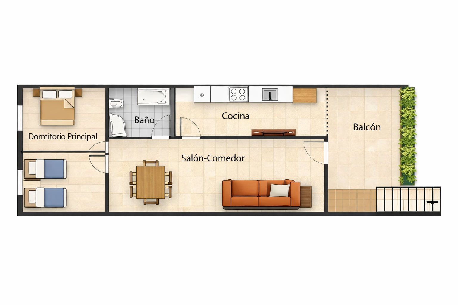 El acceso se realiza a través de una terraza privada en la planta baja, un espacio perfecto para disfrutar del clima mediterráneo, colocar una mesa exterior o utilizarlo como zona de descanso.