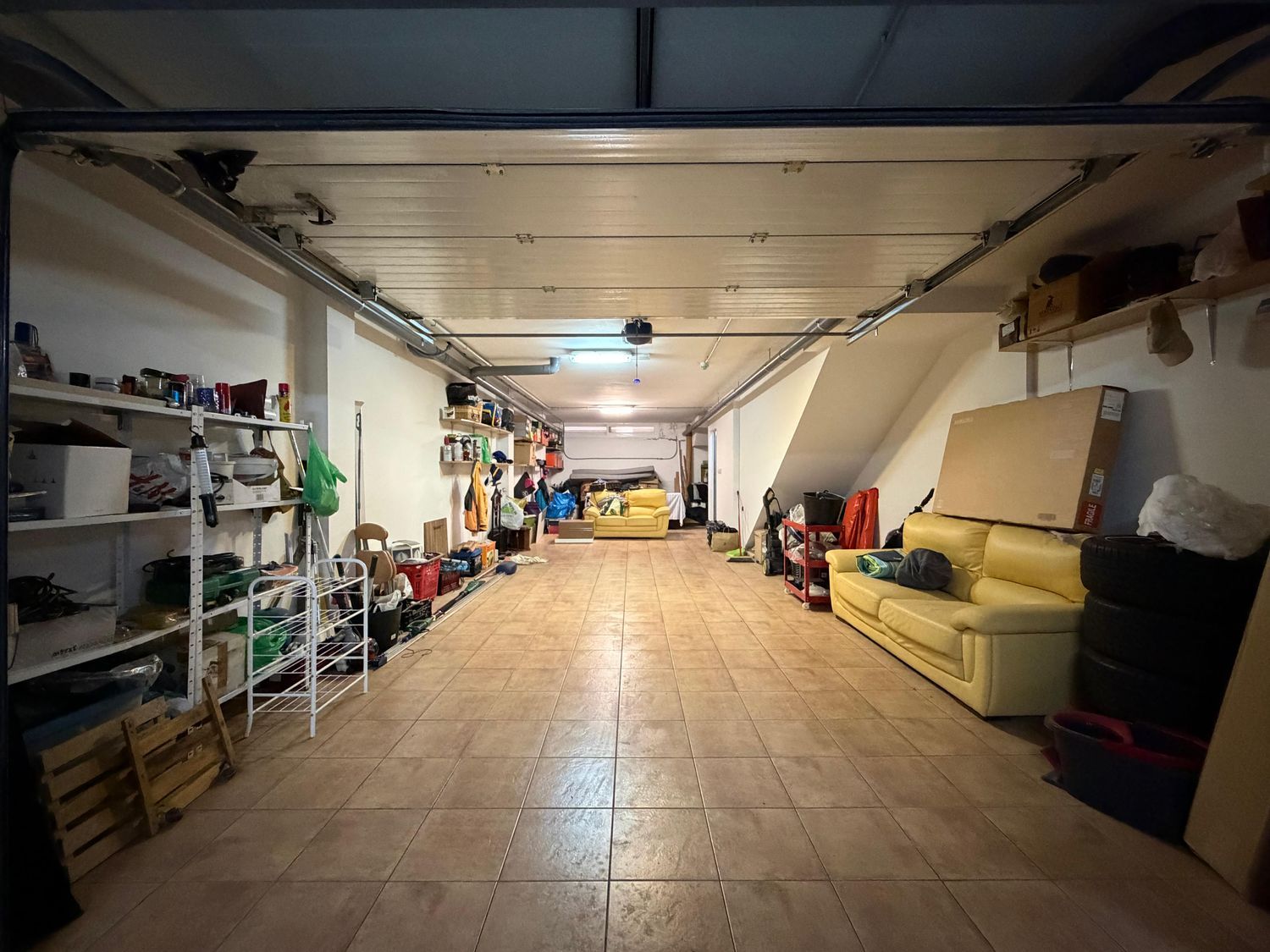 Garaje cerrado con capacidad para dos vehículos y gran cantidad de armarios y zona de almacenaje.